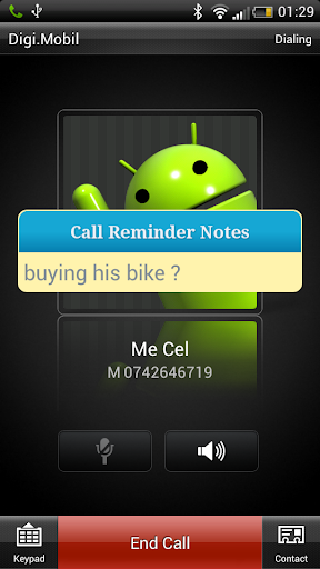 Descargar Reminder Notes Unlocked for Android are shown on screen during call (incall and outcall), allowing you to access relevant information at the right moment, when you actually speak over the phone with a person.