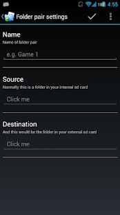 * Add a folder pair. Source is the internal sdcard and destination is your extSdCard