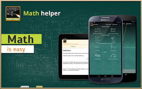 MathHelper enables you to not only to solve the problem, but also to understand the process of solving it, step by step. This convenient multifunctional calculator includes an extensive theoretical guide in several languages. You’ll get an algebraic mini-laboratory that is stored conveniently and compactly on your Android!